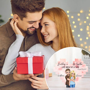 Custom Couple Puzzle Gift – Personalized Double-Sided Heart Hug Cartoon with Names & Date – Romantic Anniversary or Valentine’s Day Gift