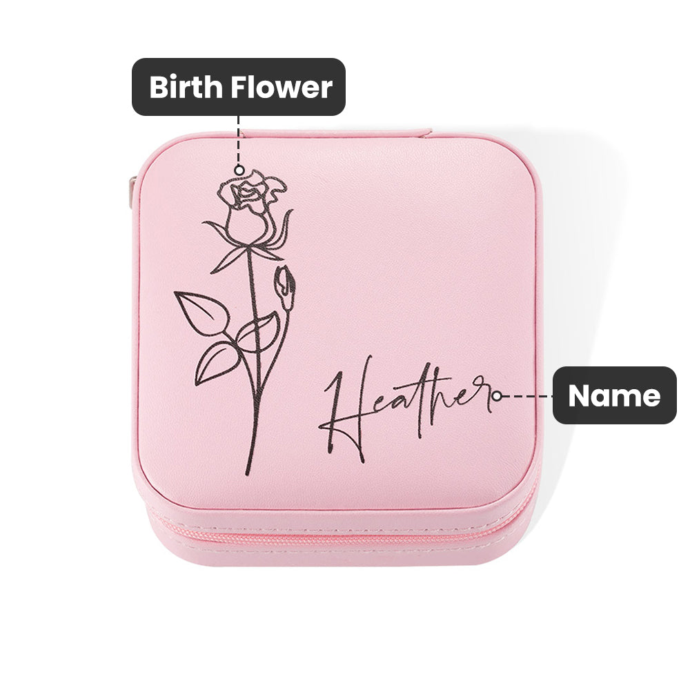 Custom Name Floral Leather Jewelry Box - Portable Travel Case for Women & Girls