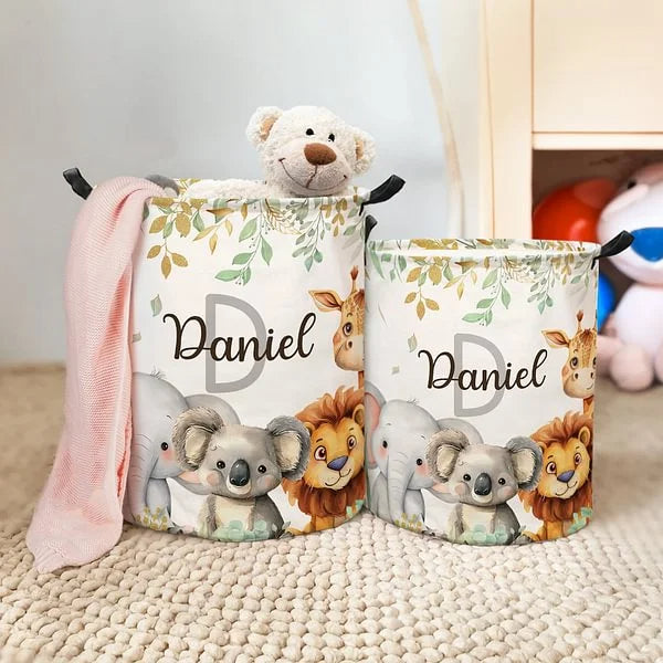 Custom Name Jungle Animal Laundry Basket – Large Waterproof Storage with Handle, Cute Gift for Kids