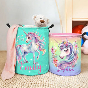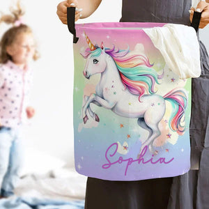Custom Unicorn Laundry Basket for Kids – Large Waterproof Toy Storage with Handle, Cute Nursery Decor & Gift