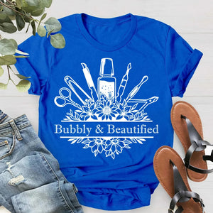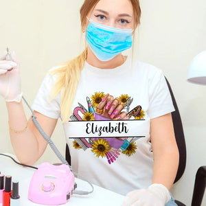 Floral Nail Art T-Shirt with Custom Name - Birthday Gift for Nail Techs & Salon Owners