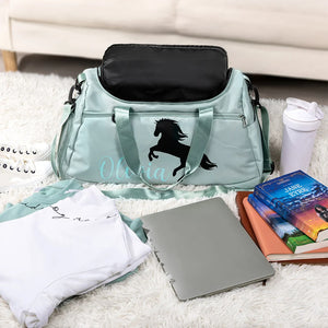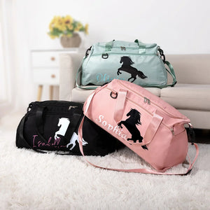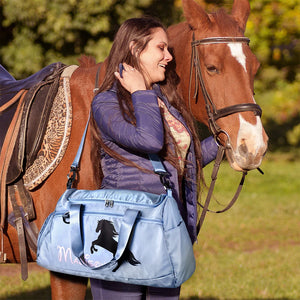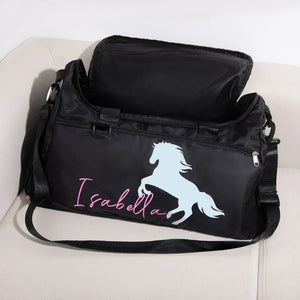 Personalised Equestrian Travel Duffel Bag with Name Waterproof Sports Carryall for Horse Riders Ideal Gift for Horseback Enthusiasts