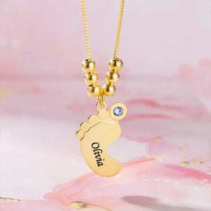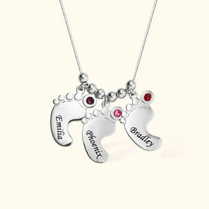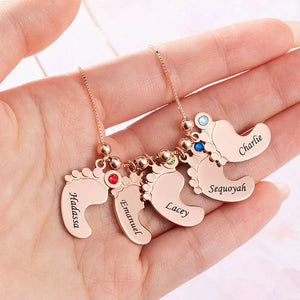 Personalised 1-5 Baby Feet with Birthstone Necklace Mother's Day Thanksgiving Day Jewellery Gift for Mother Grandma