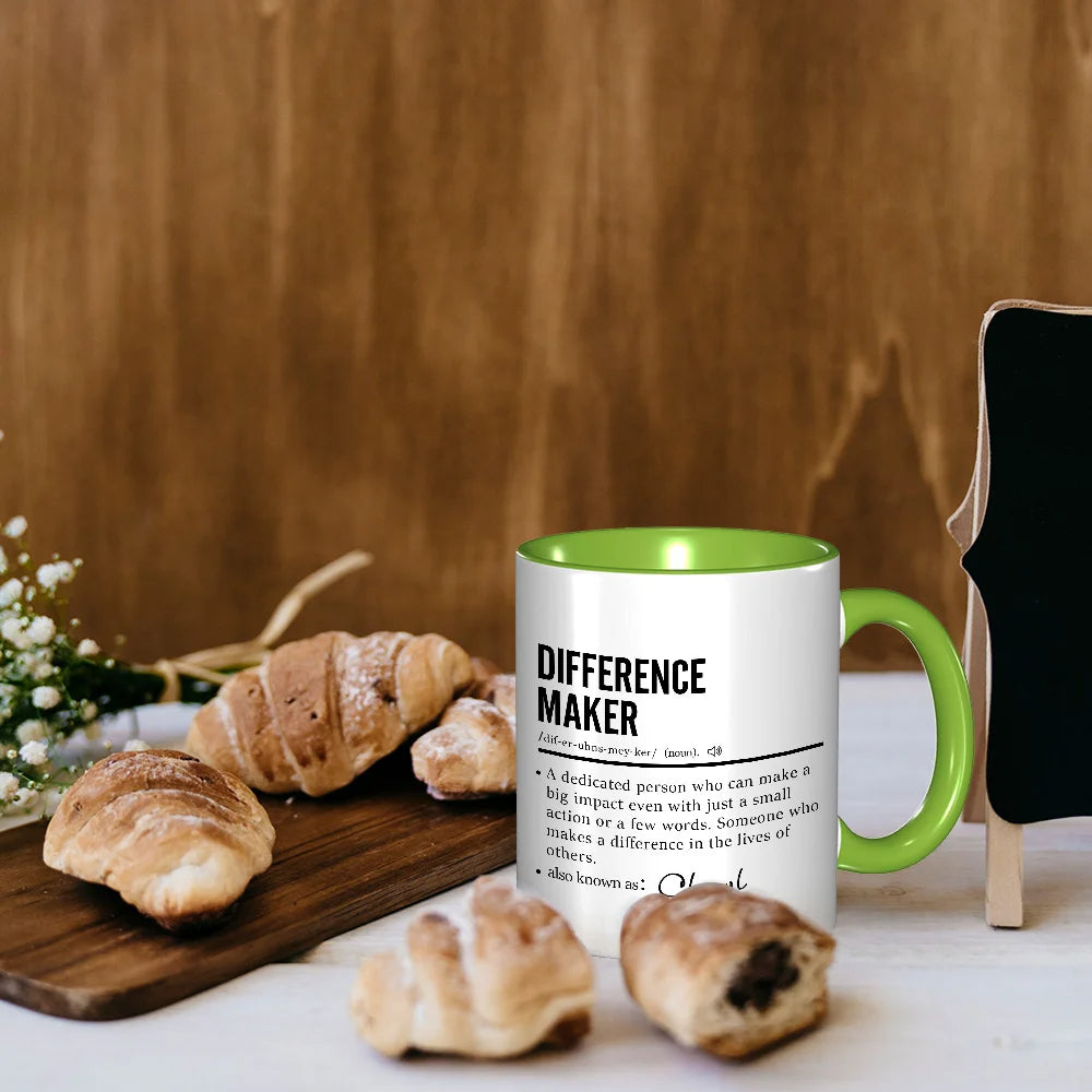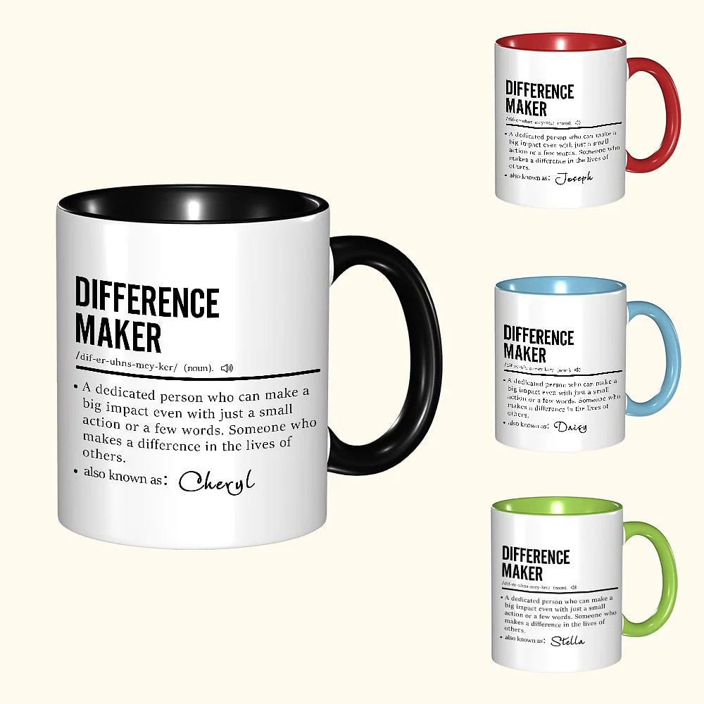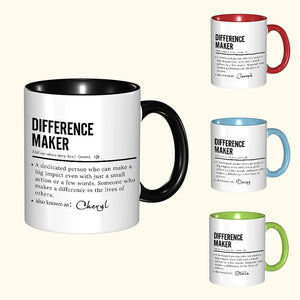 Personalised 11oz Ceramic Mug with "Difference Maker" Design and Name – Appreciation or Birthday Gift for Teacher, Leader, or Coworker