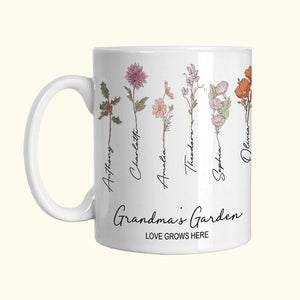 Personalised 11oz Ceramic Mug with Love Grows Here Design, 1-15 Birth Flowers and Names – Perfect Mother’s Day Gift for Mom or Grandma
