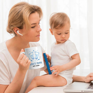 Personalised Baby Footprint Ceramic Mug with Name and Year – Ideal Baby Shower or Birthday Gift for New Parents Mom Dad