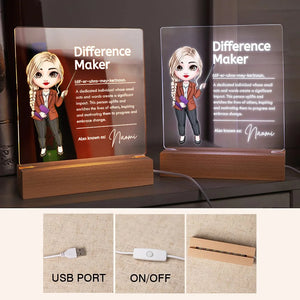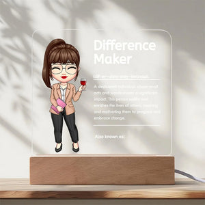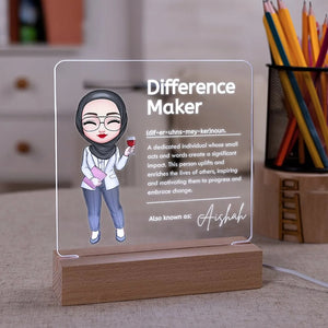 Personalised Cartoon Difference Maker LED Night Light with Name and Wooden Base – Thoughtful Teacher's Day or Birthday Gift for Educators