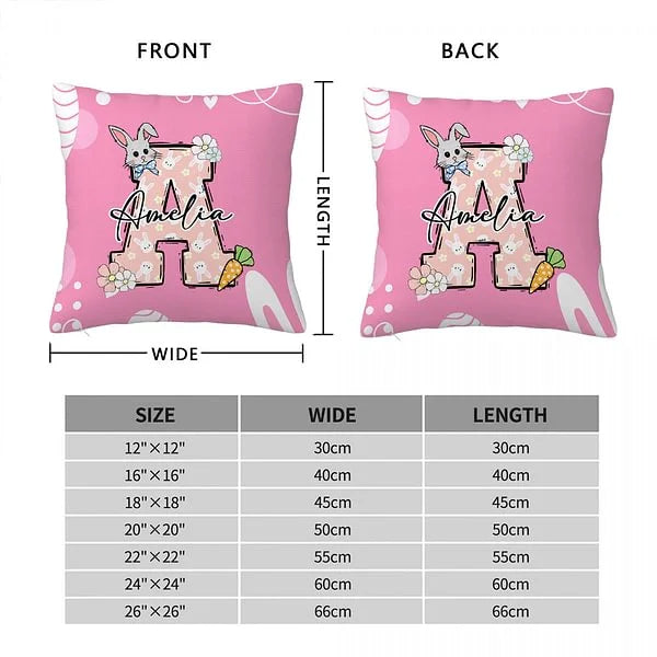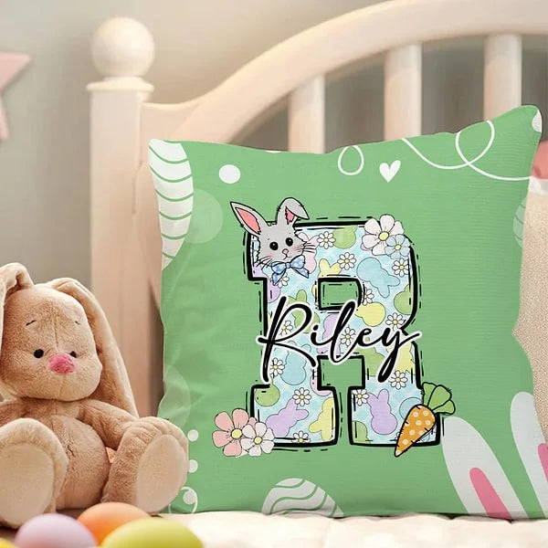 Personalised Cute Easter Bunny Soft Pillow Cover with Initial Name – Perfect Easter Party and Home Decor Gift for Boys and Girls