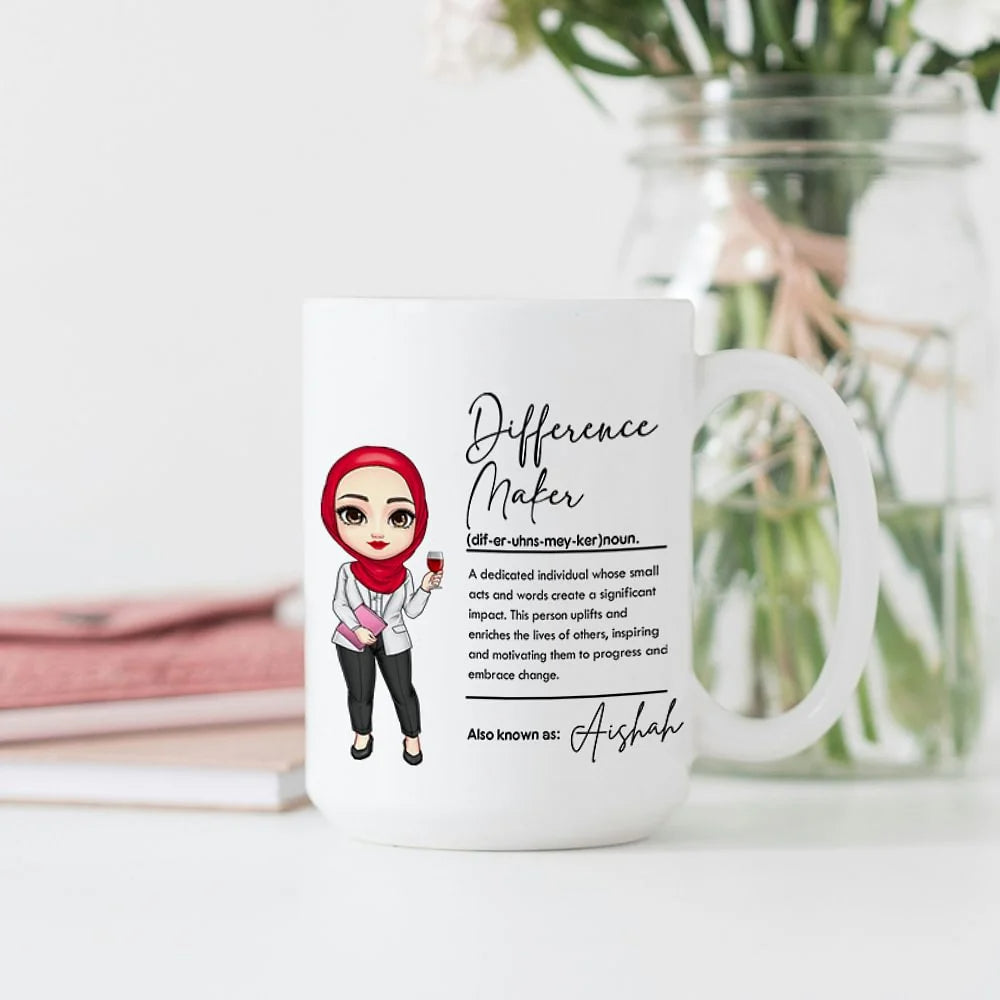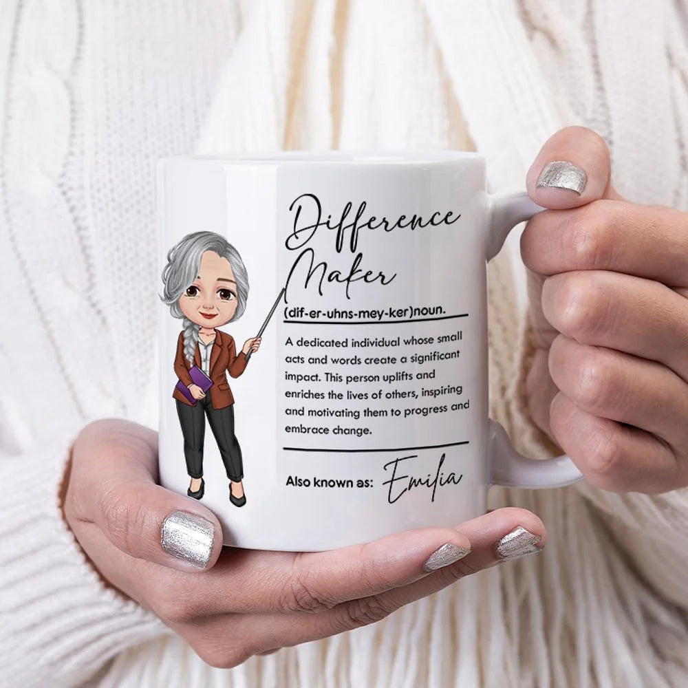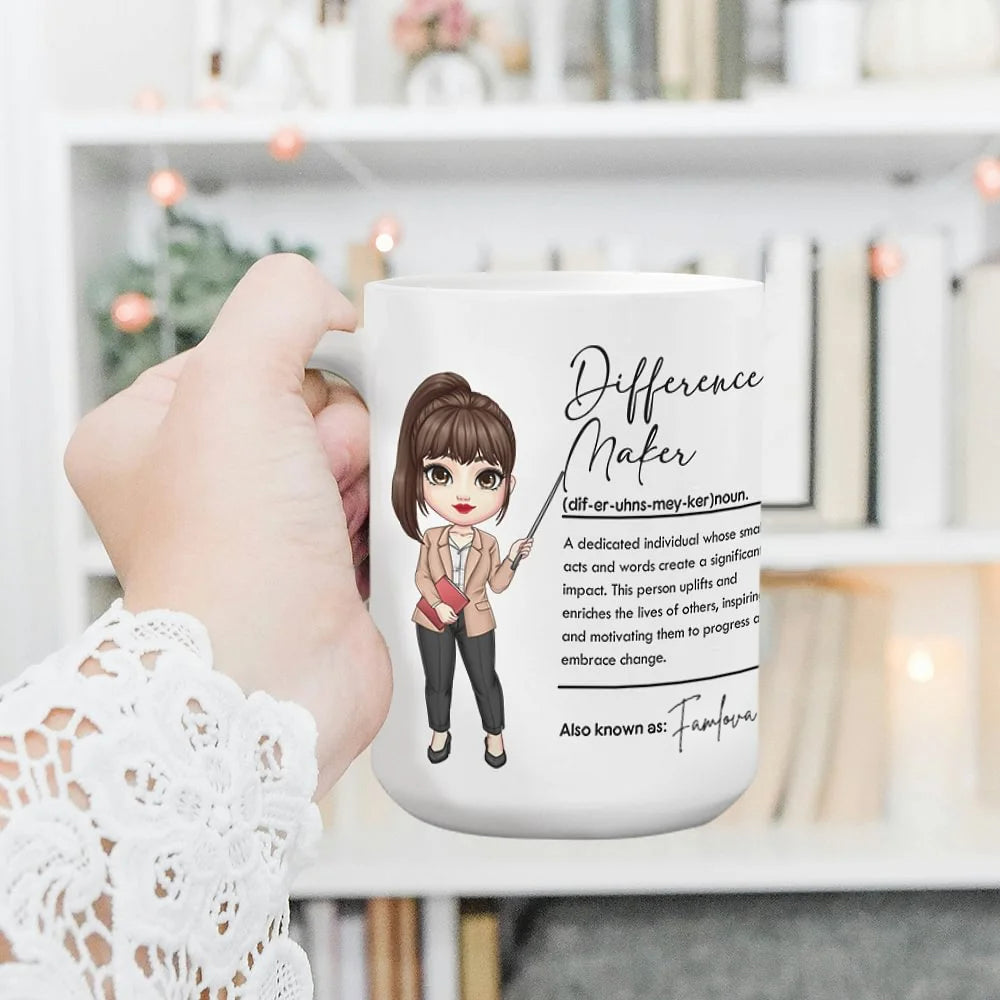 Personalised Difference Maker Cartoon Teaching Character Ceramic Mug with Name Perfect Teacher’s Day or Back-to-School Gift
