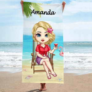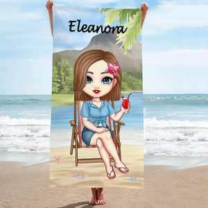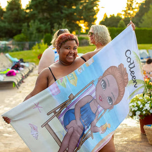 Personalised Girl on the Beach Quick-Dry Oversized Microfiber Beach Towel – Summer Travel Essential and Birthday Holiday Gift for Her
