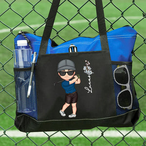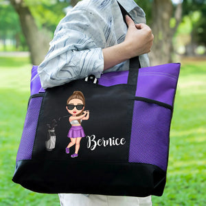 Personalised Golf Lover Waterproof Tote with Cartoon Character Name and Birth Flower Large Travel Bag Birthday Gift for Golf Fans and Lovers