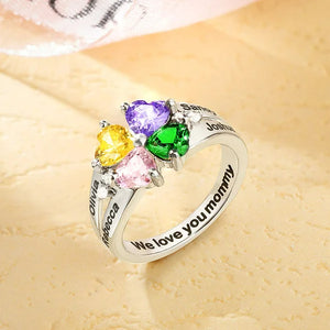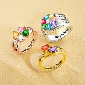 Personalised Heart Assortment 1-8 Birthstones Sterling Silver Ring with Engraved Name and Text Mother's Day Birthday Gift for Woman