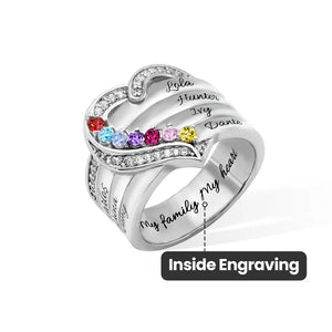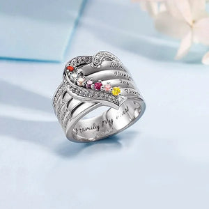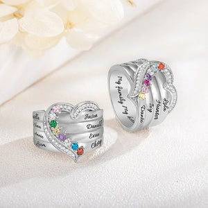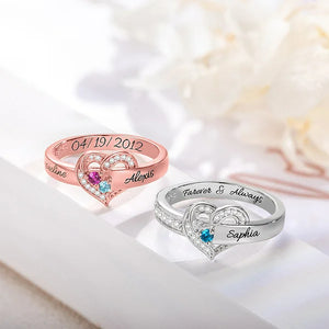 Personalised Heart Design Sterling Silver Ring Engraved 1-8 Birthstones and Names Birthday Mother's Day Gift for Women