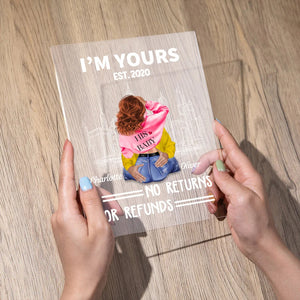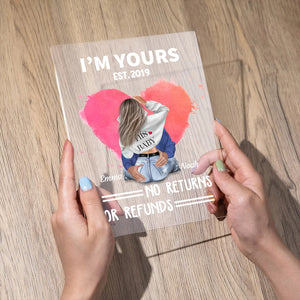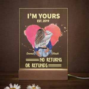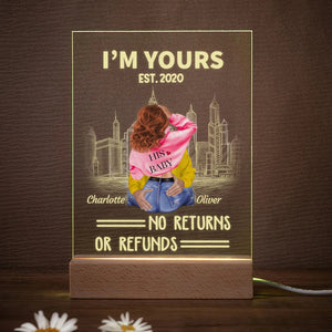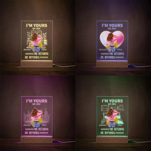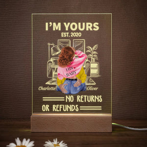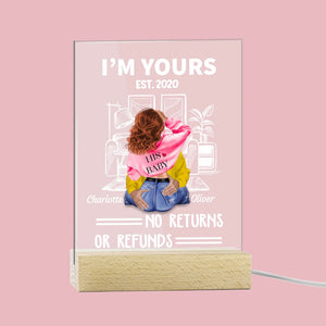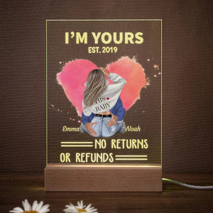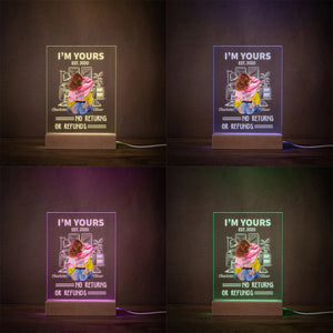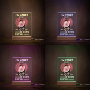 Personalised "I Am Yours No Returns or Refunds" LED Night Light with Wooden Base – Romantic Valentine's Day Gift for Couples