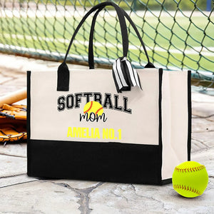 Personalised Large Canvas Tote Bag for Baseball and Basketball Moms Custom Game Day Sports Gift for Women