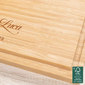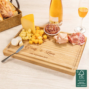 Personalised Lover Tree Bamboo Cutting Board with Engraved Names and Juice Groove – Wedding or Housewarming Gift for Couples