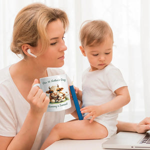 Personalised Our First Mother's Day Ceramic Mug with Adorable Animal Design, Name & Year – Heartfelt Gift for Mom's Special Day