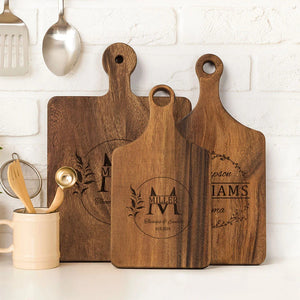 Personalised Reversible Charcuterie Cutting Board with Engraved Initial, Name & Date Wreath – Housewarming Gift with Easy-Grip for Family