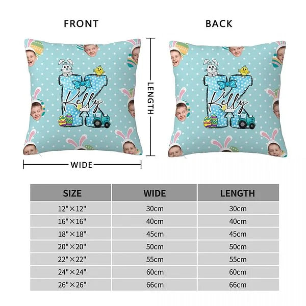 Personalised Soft Throw Pillow Cover with Name Colorful Polka Dot Cute Easter Bunny 1–3 Photos Easter Party Gift for Boys Girls