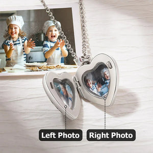 Personalised Sunflower Heart Locket Necklace with 2 Photos and Text Birthday Christmas Mother's Day Memorial Gift for Women