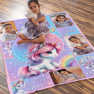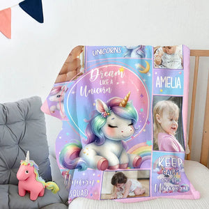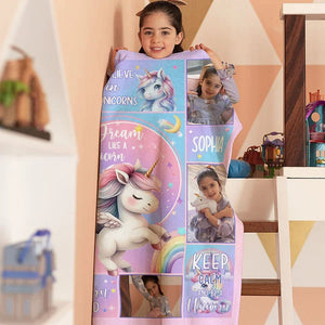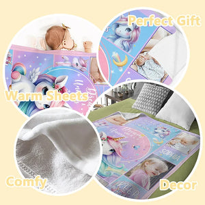 Personalised Unicorn Fantasy Photo Collage Throw Blanket with Name Soft Sofa Decor Perfect Birthday or Baby Shower Gift for Baby Girls
