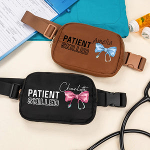 Personalised Waterproof Crossbody Waist Bag with Bow Stethoscope and Name Adjustable Strap Graduation Gift for Medical Students and Staff