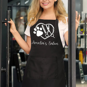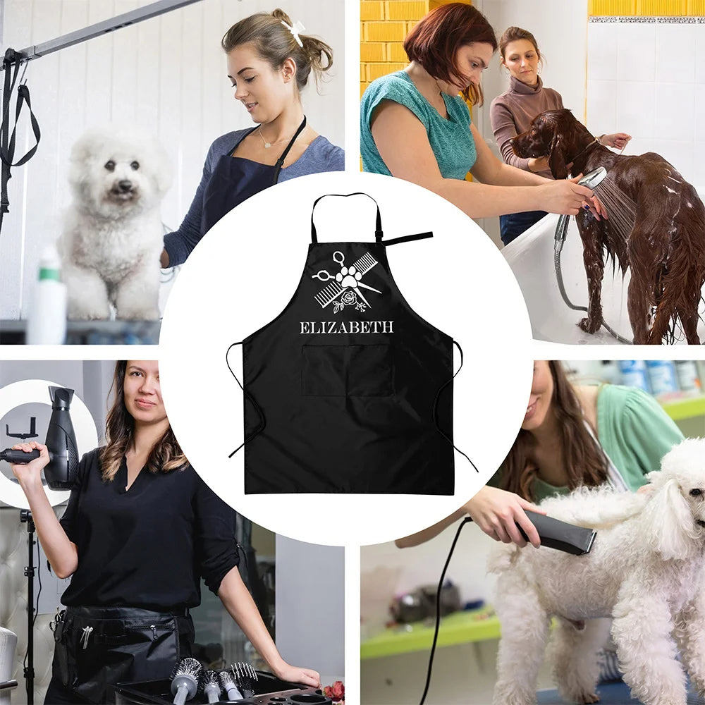 Personalised Waterproof Hairdressing Apron with Paw Print Design, Adjustable Strap and Pockets – Perfect Birthday Gift for Pet Owners Groomers