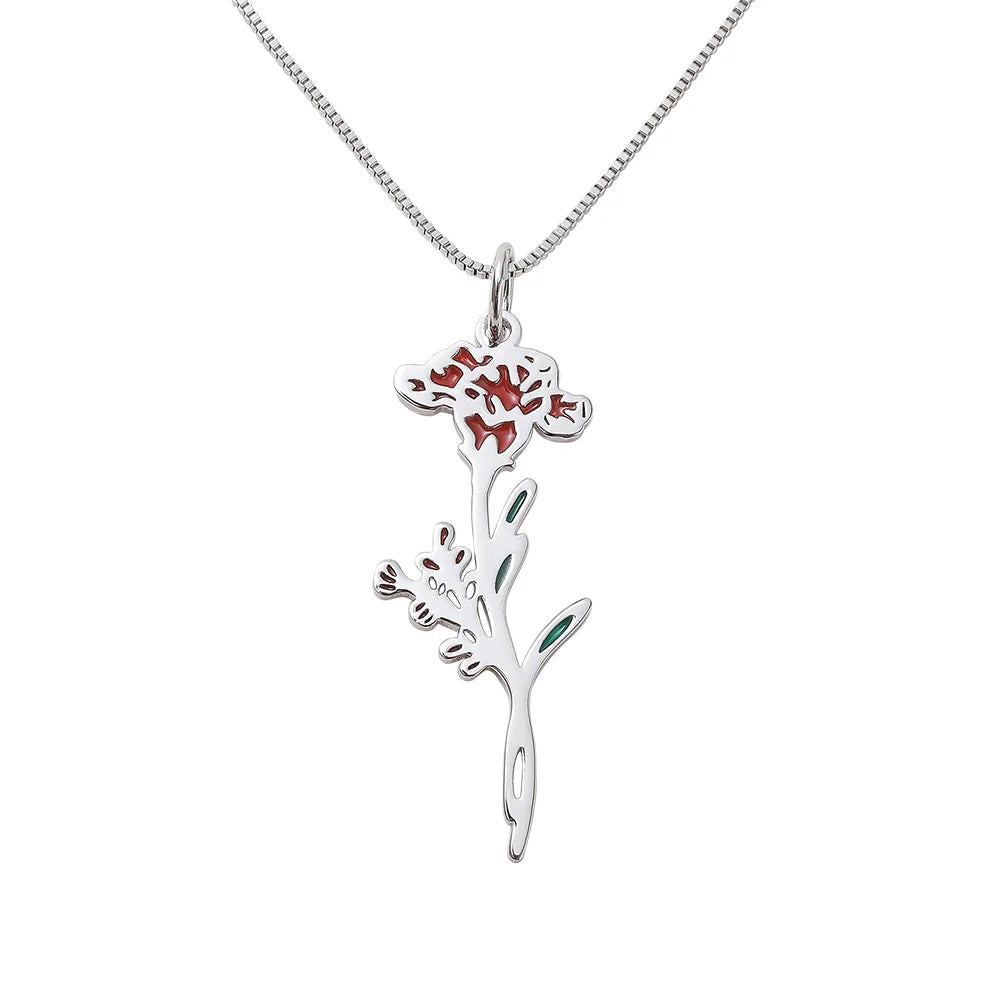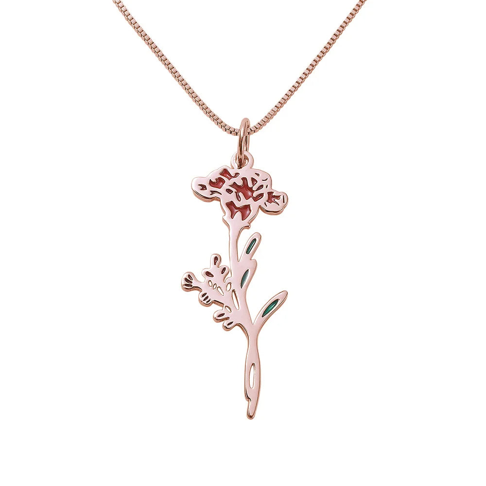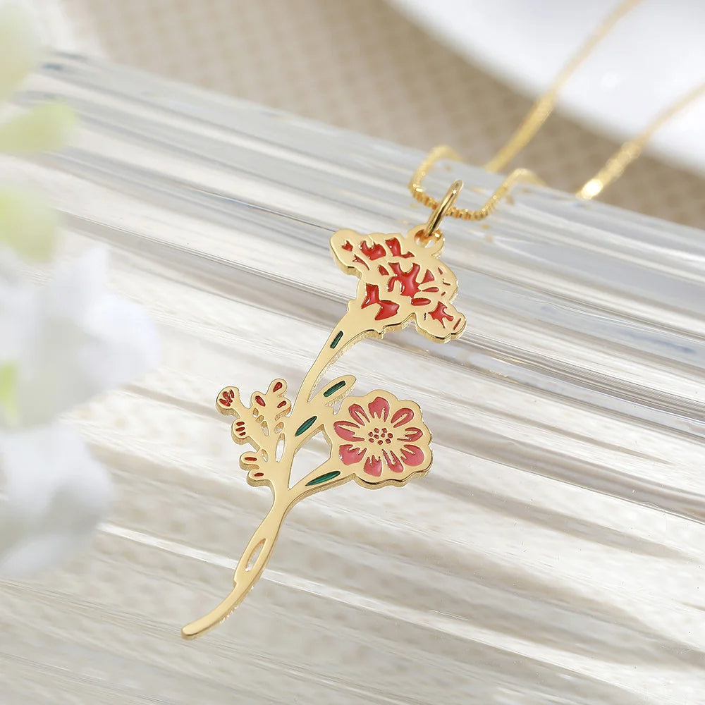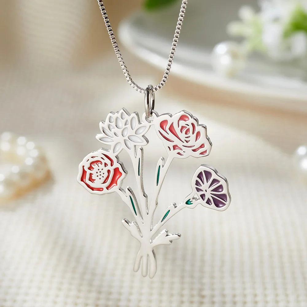 Personalized 1-7 Enamel Birth Flower Family Bouquet Pendant Necklace Birthday Mother's Day Gift for Mom Grandma