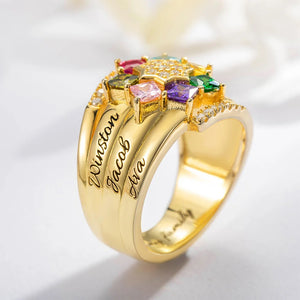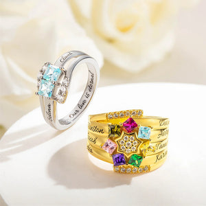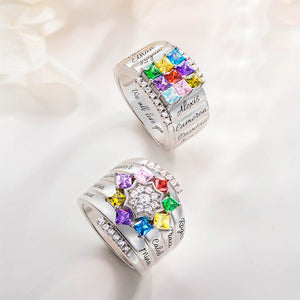Personalized 1- 9 Square Birthstone Ring with Engraved Name Family Couple Sterling Silver Jewelry Birthday Valentine's Day Gift for Her