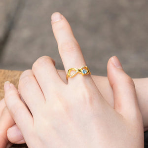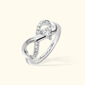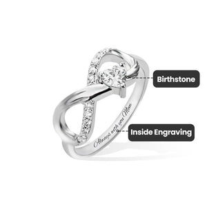 Personalized Angel Wing Infinity Ring with Heart Birthstone and Engraved Text Birthday Anniversary Gift for Her
