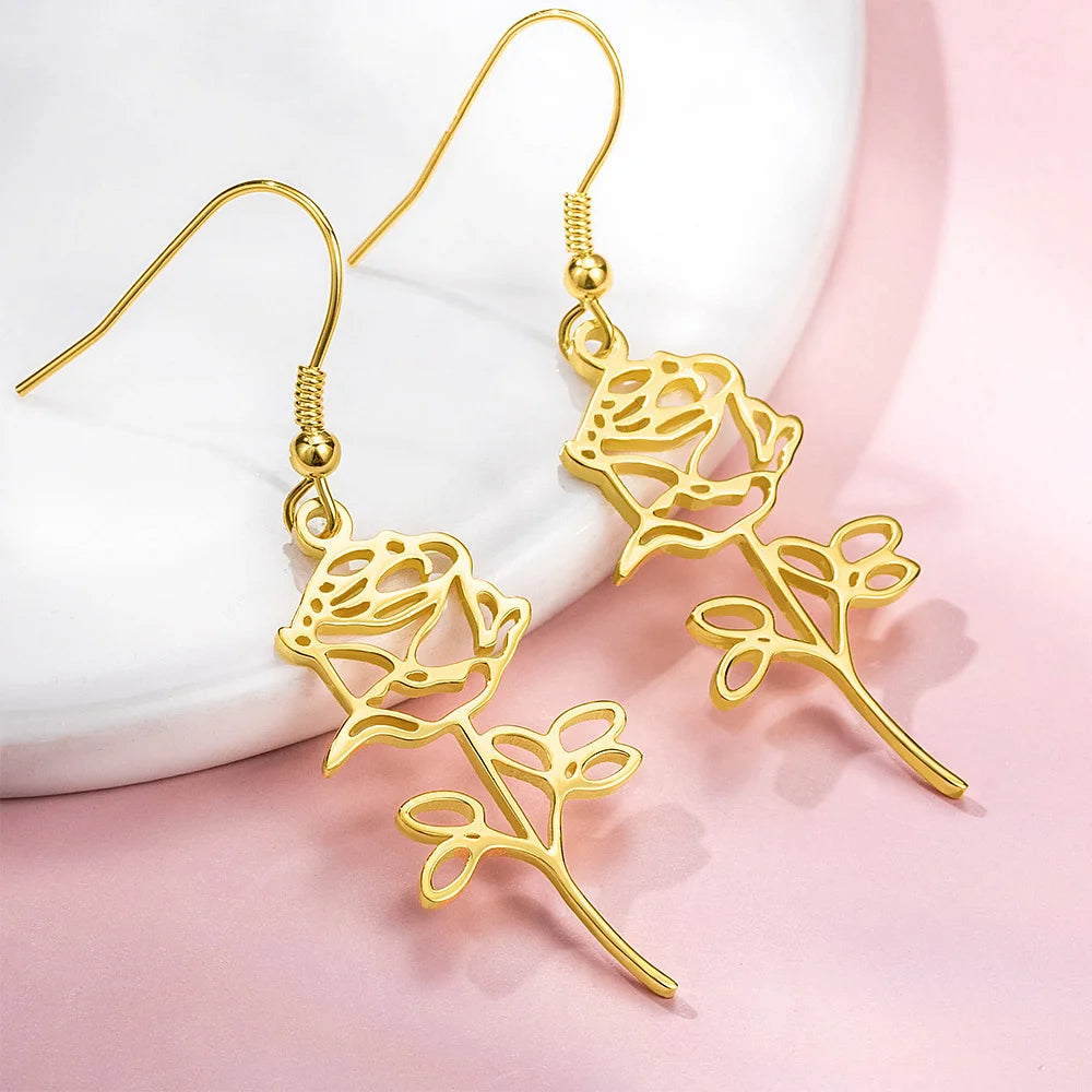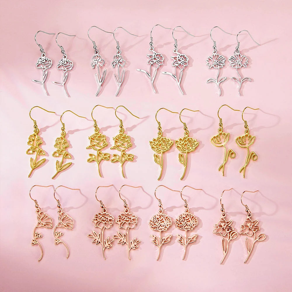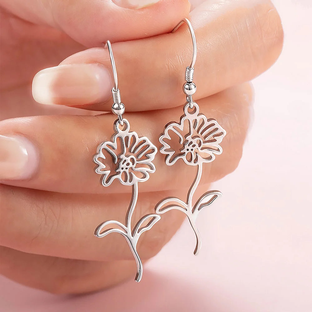 Personalized Birth Flower Dangle Earrings Gifts for Her