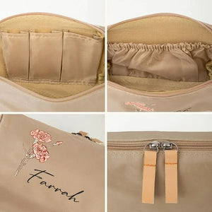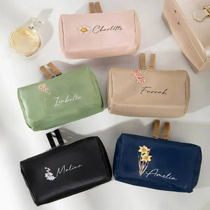 Personalized Birth Flower Makeup Bag with Name Portable Travel Accessories Birthday Bachelorette Party Gift for Women