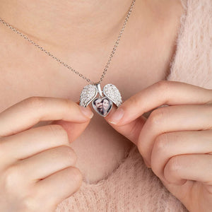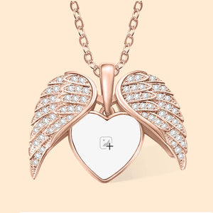 Personalized Cubic Zircon Heart Shape Angel Wing Photo Locket Necklace Anniversary Birthday Gift for Women