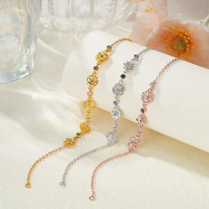 Personalized Dainty 1-5 Birth Flower Birthstone Mixed Charm Bracelet Family Jewelry Mother's Day Anniversary Birthday Gift for Women