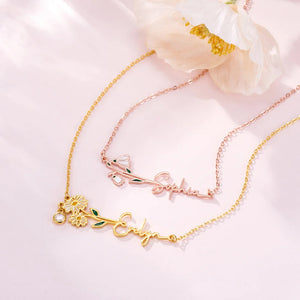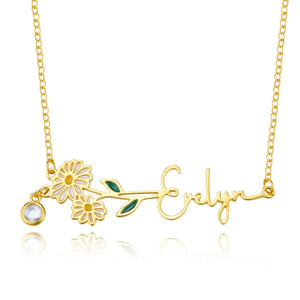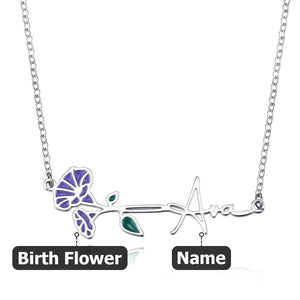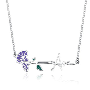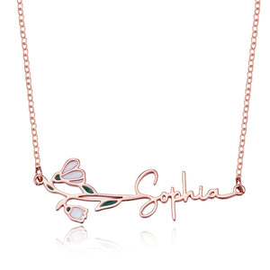 Personalized Dainty Enamel Birth Flower Name Necklace Anniversary Gift for Women Girls