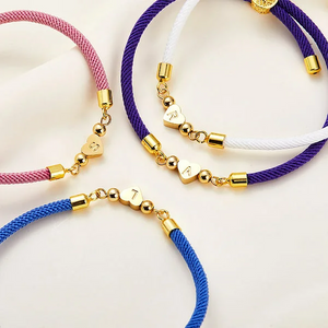 Personalized Engraved Initial Heart Charm Adjustable Braided Bracelet Multicolor Available Birthday Anniversary Gift for Her