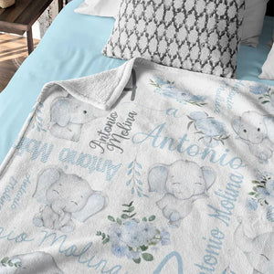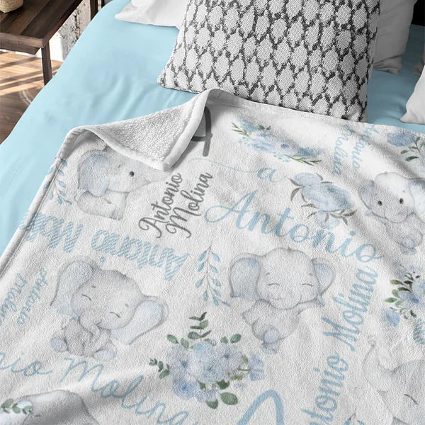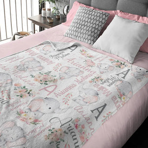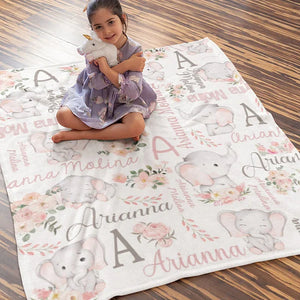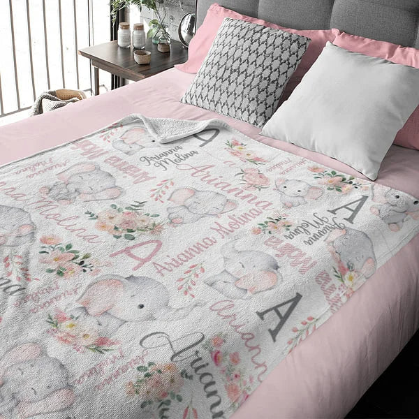 Personalized Floral Elephant Girl Blanket with Name – Perfect Christmas, Birthday Baby Shower Gift for Baby, Kid and Family