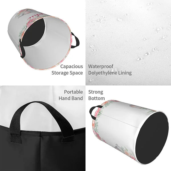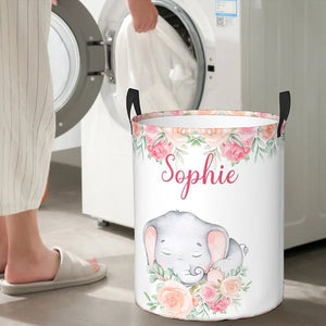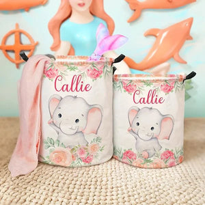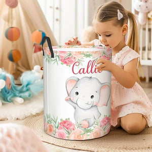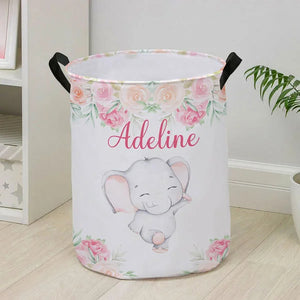 Personalized Floral Elephant Waterproof Oxford Cloth Toy Storage Laundry Basket with Name Birthday Gift for Children