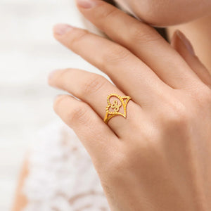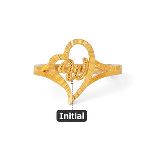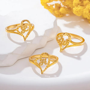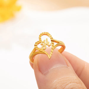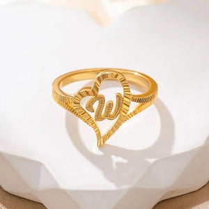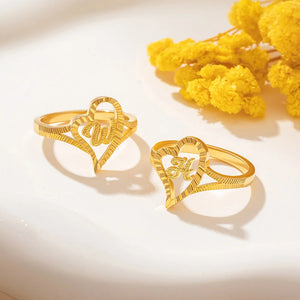 Personalized Gold Vintage Diamond Cut Slanted Heart Letter Ring with Initial Dainty Jewelry Birthday Anniversary Gift for Women
