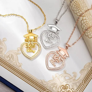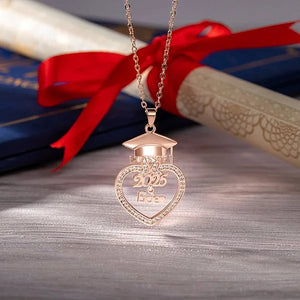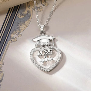 Personalized Grad Cap Zircon Heart Necklace with Name and Year Class of 2025 Graduation Birthday Gift for Graduates