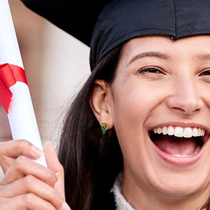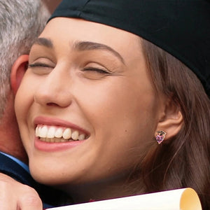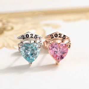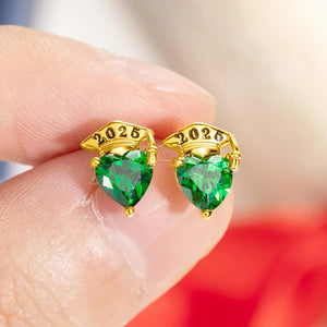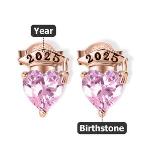 Personalized Graduation Cap Heart Birthstone Stud Earrings with Engraved Year and Earrings Display Card Graduation Birthday Gift for Women