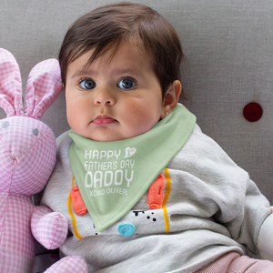 Personalized Happy First Father's Day Adjustable Baby Bandana Bib 100% Cotton with Nickname and Text, Baby Shower Gift for New Dad and Baby