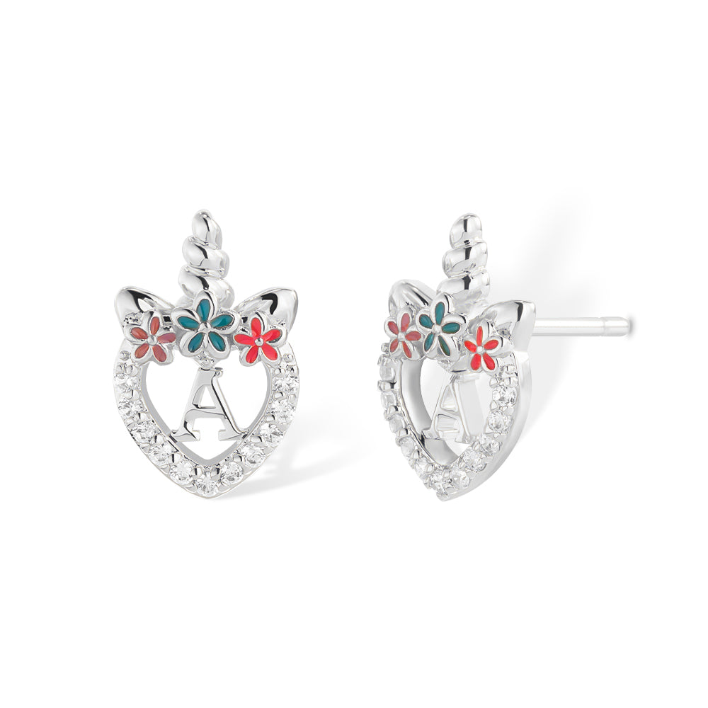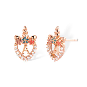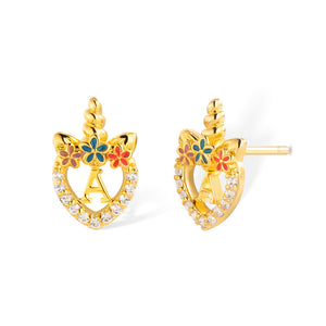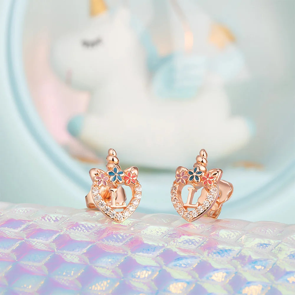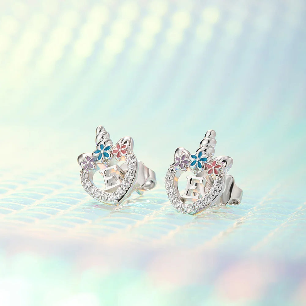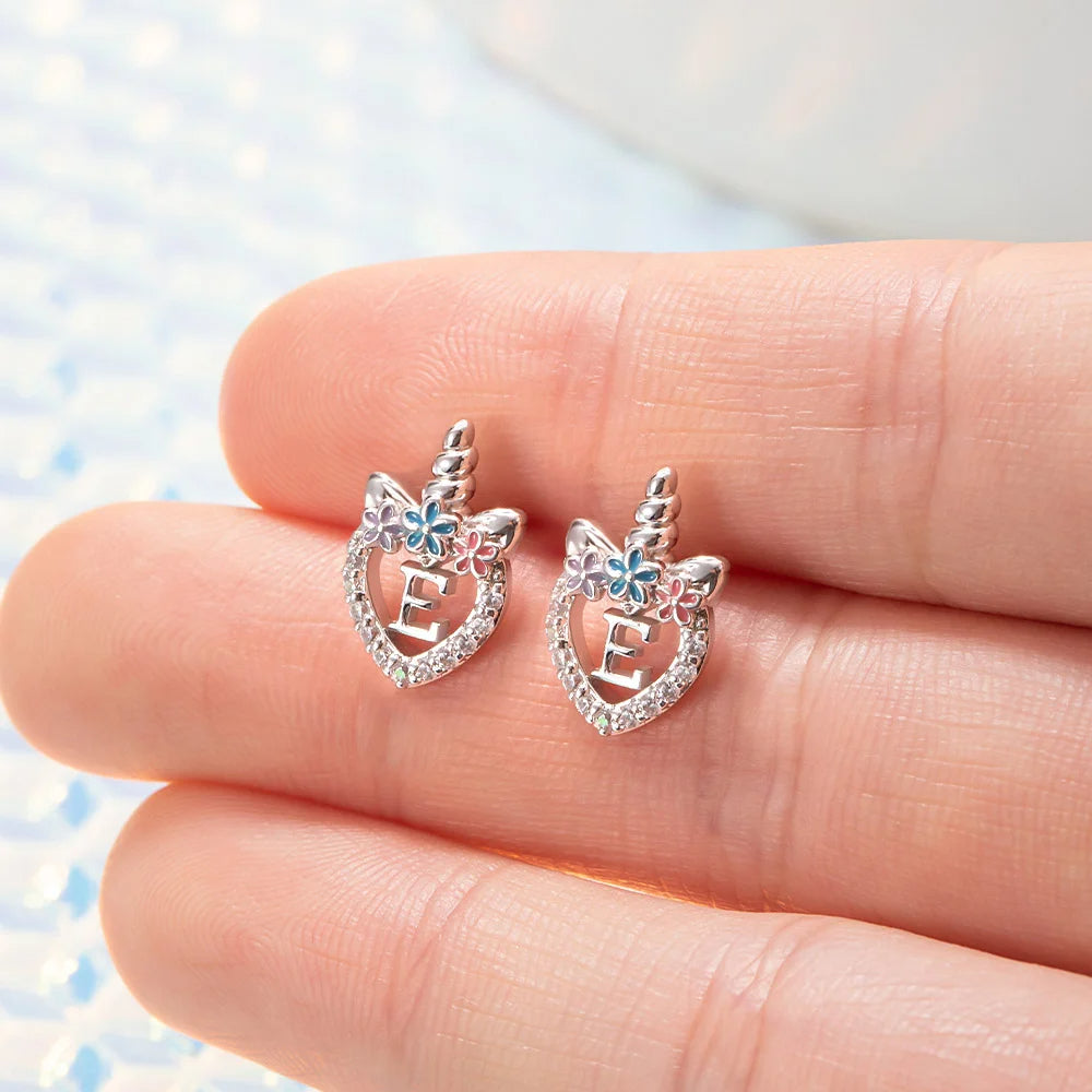 Personalized Hypoallergenic Fantasy Unicorn CZ Stud Earrings with Initial Birthday Christmas Gift for Teen Girls Daughter