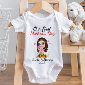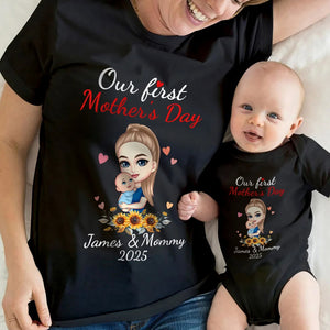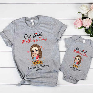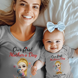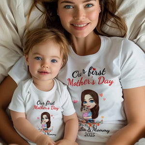 Personalized 'Mom Hugs Baby' Matching Set - 100% Cotton Mother & Baby Bodysuit + T-Shirt - Custom Names & Date - Perfect First Mother's Day Gift, Newborn Keepsake, New Mom Present