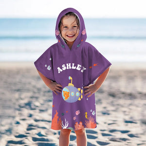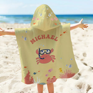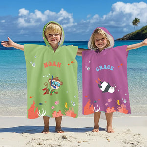 Personalized Multicolor Hooded Beach Towel with Name Soft Quick-Dry Design Featuring Diving Bear Rabbit Animals Perfect Beach Pool Birthday Gift for Kids