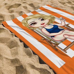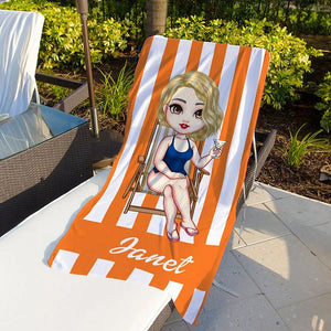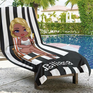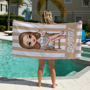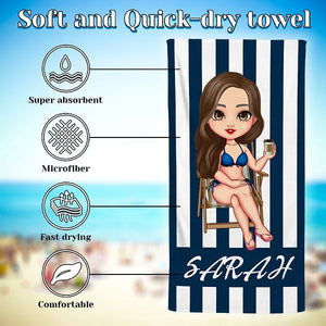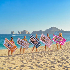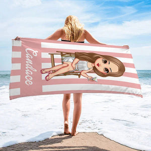 Personalized Name Quick-Dry Ultra Absorbent Striped Pink and White Stylish Beach Towel Perfect Birthday Pool Party or Vacation Gift for Women