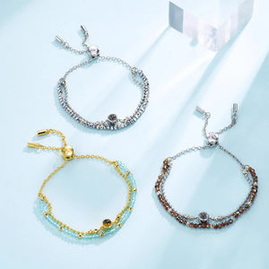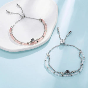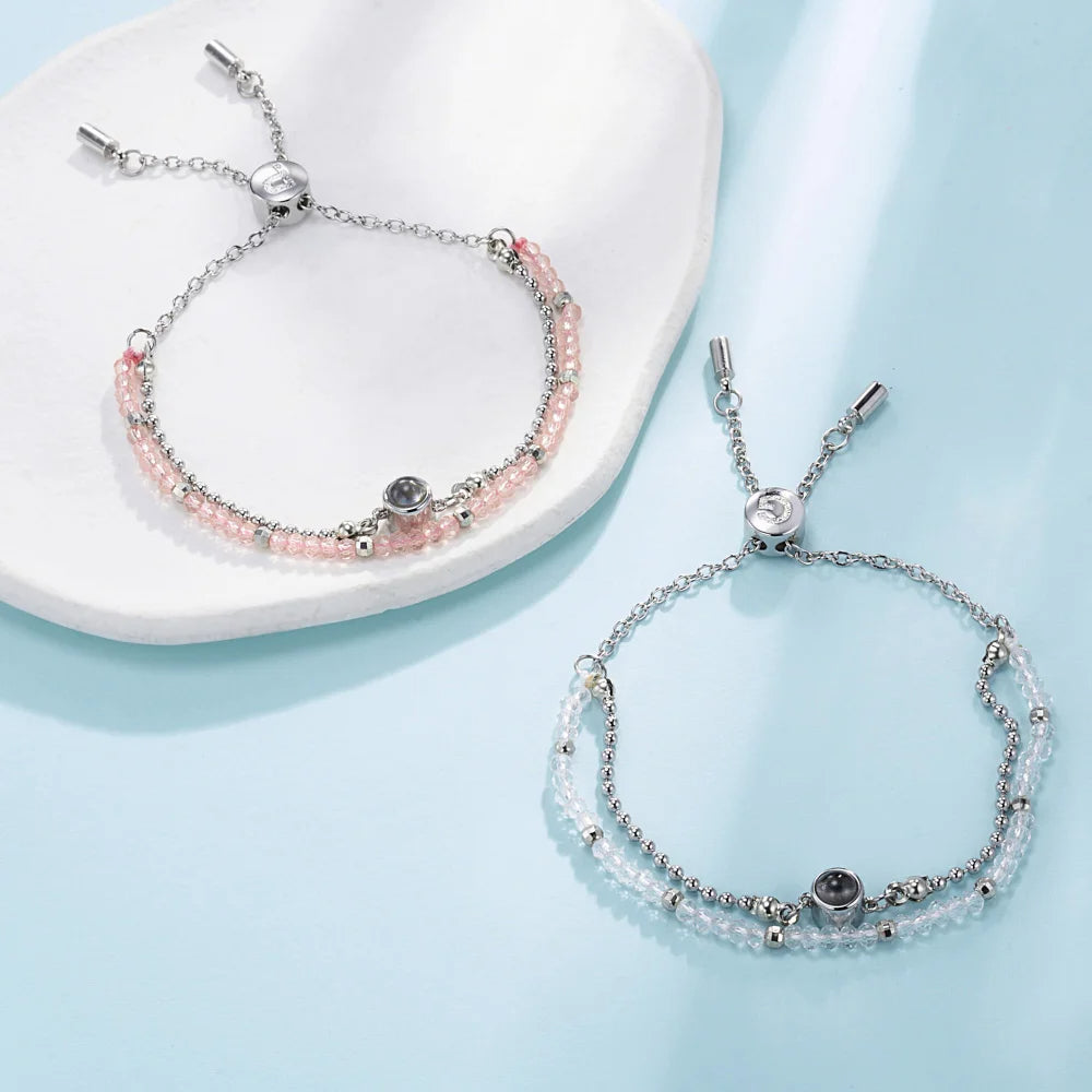 Personalized Photo Projection Adjustable Double Chain Bead Bracelet with 100 Languages Dainty Jewelry Anniversary Birthday Gift for Women