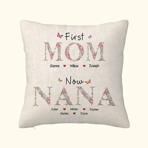 Personalised Heart Flowers Throw Pillow Cover with Kid Names Perfect Mother's Day Birthday Gift for Grandma
